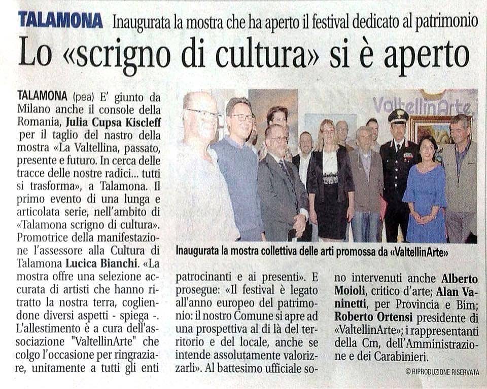 @ValtellinArte - Libri In Valle  Calendario Corsi  Calendario Eventi  Chi siamo  Comunicati Stampa Utenti  Concorsi  Elenco Organizzatori Eventi  F.A.Q - Come Gestire i Mi Piace sulle opere pubblicate in ValtellinArte.it  F.A.Q. - Come Aggiungere le tue Opere in ValtellinArte.it  F.A.Q. - Come Aggiungere un Evento/Corso in ValtellinArte.it  F.A.Q. - Come Attivare il profilo Utente in ValtellinArte.it  F.A.Q. - Come fare Login (autenticarsi) a ValtellinArte.it  F.A.Q. - Come Modificare il profilo Utente in ValtellinArte.it  F.A.Q. - Come Modificare le tue Opere in ValtellinArte.it  F.A.Q. - Come Modificare un Evento/Corso in ValtellinArte.it  F.A.Q. - Come Registrarsi a ValtellinArte.it  F.A.Q. Manuale utente  Gli artisti Valtellinesi  I Musei in Valtellina  Il punto di riferimento per L'Arte della Provincia di Sondrio (Valtellina e Valchiavenna)  Interviste  Manifestazioni Artistiche  Opere  Rassegna Stampa  Regolamento del Sito  Riconoscimenti  Site Map  Aizram Marzia (Aizram)  Alba Marchetti (albamarchetti)  Alessandra Londoni (AlessandraLondoni)    (Andrea Angelini)  Andrea Zocco (Andrea Zocco)  Anna Lorenzini (Anna Lorenzini)  Arianna Romeri (Arianna)  Arturo Corradini (Arturo Corradini)    (Augusto.fanchi)  Carlotta Lavizzari (Carlotta)  Cinzia Bassi (Cinzia Bassi)  Claudia Colasanto (Claudia)  COLOURS  (Colours)  Cristina Turella (Cristina Turella)  Daniele Giusberti (Daniele)    (danielecerri)  dany nava (dany)  Davide Rastelli (David Scrif Quaicoss)  Davide Sertorelli (davide sertorelli)  Dea Scimone (Dea Scimone)  Decio Cometti (deciocometti@gmail.com)    (Diego rovetti)  Doriano Ferri (Doriano)  GIANPIERO MAZZONI-ROVELLI (EDIZIONI PROGEA)  Emanuele Martinelli (Emanuele Martinelli)  Equilibrio Danza Yoga Benessere (Equilibrio ssd arl)  Fabio Fiorini (fabiofiorini1981)  Flora Folli (Flora Folli)  Francesca Fiorini (Francesca Fiorini)  Francesco Terelle (Francesco)  Franco Parolini (francoparolini)  Franco Baldazzi (Frank)  Gabriele Dolzadelli (GabrieleDolzadelli)  Gian Rino Ortelli (gianrino)  Giorgio Squarcia (giorgiosquarcia)    (Giovanni)    (Giovanni De Simone)    (Hama)  Carmen Fognini (il legno di carmen)  Mario Cecchini (isenzatitolo)  Ivan Fabani (ivan.fabani@gmail.com)    (Kikko)    (Lela)    (Lela''s Handmade)  Lorella Hohn (Lory65)  Luca Salvadalena (Luca Salvadalena)  Roberto Ortensi (Macchie Di Colore)  Mara  (Mara)    (Maria Grazia Messa)    (Marica mazzoni)  Marika Kohanicz (MarikaK)  MARIO MARIANI (Mario Mariani)  Mario Ortensi (Mario40)  Raffaele Menonna (Mera)  Michele Toniatti (Michele Toniatti)    (Miguel tiamat)    (Mr.paky 67)  Nagua Colturi (Nagua)    (Nicky''s Arts)  Oscar Meglioli (Oscar Meglioli)  Paola Mara De Maestri (paolamara)  Paolo Zen (Paolo Zen)    (Patrizia)  Riccardo Galimberti (RiccardoGalimberti)  Rita Moscatelli (Rita Moscatelli)  Roberto Plevano (Roberto Plevano)  Roberto Bogialli (roberto.bogialli)    (rosanna.gregorace)  Rosy Pozzi (Rosy-1954)  sbalzarte  (sbalzartesacra)  Simona Scarlet (Scarlet)  Selene Salas Fox (selene)  sergio sarri (sergiosarri)  Simona Cometti (simocome)    (Soniat)  Stefania Fontana (Stefania)    (Teresa Micheletti)    (Turri)  Valentina Cama (Valentina Cama)  WILD IDEA (Wild Idea)    (Zariska & Salis Juggling Duo)    (Zoarte)  Artisti di Albaredo per San Marco  Artisti di Albosaggia  Artisti di Aprica  Artisti di Bormio  Artisti di Cataeggio Fraz.Filorera ValMasino  Artisti di Chiavenna  Artisti di Dazio  Artisti di Grosotto  Artisti di Lanzada  Artisti di Montagna in Valtellina  Artisti di Morbegno  Artisti di Piateda  Artisti di Piuro  Artisti di Poggiridenti  Artisti di Regoledo  Artisti di Sondalo  Artisti di Sondrio  Artisti di Talamona  Artisti di Tirano  Artisti di Torre di Santa Maria  Artisti di Traona  Artisti di Tresivio  Artisti di Valfurva  Calendario di _Fuori Provincia  Calendario di Albosaggia  Calendario di Aprica  Calendario di Ardenno  Calendario di Arquino  Calendario di Berbenno di Valtellina  Calendario di Bormio  Calendario di Campodolcino  Calendario di Castello dell''Acqua  Calendario di Castione Andevenno  Calendario di Cepina  Calendario di Chiavenna  Calendario di Chiesa in Valmalenco  Calendario di Chiuro  Calendario di Cosio Valtellino  Calendario di Dazio  Calendario di Faedo Valtellino  Calendario di Gallivaggio  Calendario di Grosio  Calendario di Isolaccia  Calendario di Lanzada  Calendario di Livigno  Calendario di Madonna di Tirano  Calendario di Mazzo in Valtellina  Calendario di Mese  Calendario di Morbegno  Calendario di Novate Mezzola  Calendario di Piateda  Calendario di Piuro  Calendario di Ponte in Valtellina  Calendario di Premadio  Calendario di Sondalo  Calendario di Sondrio  Calendario di Talamona  Calendario di Teglio  Calendario di Tirano  Calendario di Torre di Santa Maria  Calendario di Traona  Calendario di Valdidentro  Calendario di Valfurva  Calendario di Valgerola  Calendario di Valmalenco  Calendario di Valtellina  Calendario di Verceia  Calendario di Villa di Tirano  ALIMENTAZIONE DEL PAPPAGALLO    (BryanP)  Sondrio Gruppo Fotografico (CFSONDRIO)  Arte Futuro Classico (Classico Arte Futuro)  compagnia mai tardi gruppofolc (compagnia mai tardi)  Crearti Associazione Culturale (Crearti)  elton GAD Art Factory (eltongadcrew)    (Enjoyvaltellina)  Arte Ferriere (FerriereArte)  Fondazione Ulisse  (Fondazione Ulisse)  GAD Art Factory  (GAD Art Factory)  LeAltreNote Valtellina Festival  (lealtrenote)  Manuele Milivinti (manuele30061981)  Maurizio Ortolani Della Nave (maurizio ortolani della nave)  Valentina - (Meva)  Maurizio Lombi (mlombi)    (paoloredaelli)    (Patrizia.Nazzari