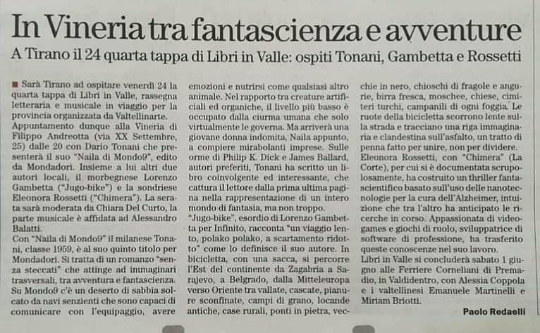 Libri in Valle "In Vineria tra fantascienza e avventura"
