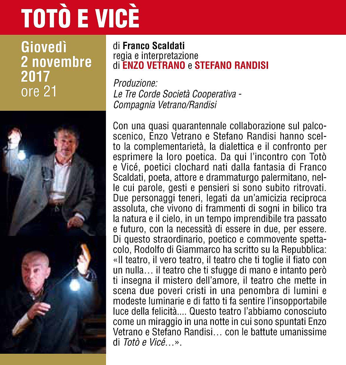 TOTÒ E VICÈ Produzione: Le Tre Corde Società Cooperativa - Compagnia Vetrano/Randisi