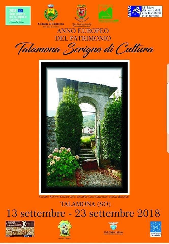 Testimonianze signorili in Talamona: Palazzo Valenti tra storia, arte, letteratura ed etnogastronomia Domenica 16 Settembre ore 16:00 Visita guidata al Palazzo Valenti con allestimento di una vetrina di prodotti tipici locali. (Alla presenza della famiglia Valenti - Airoldi). |