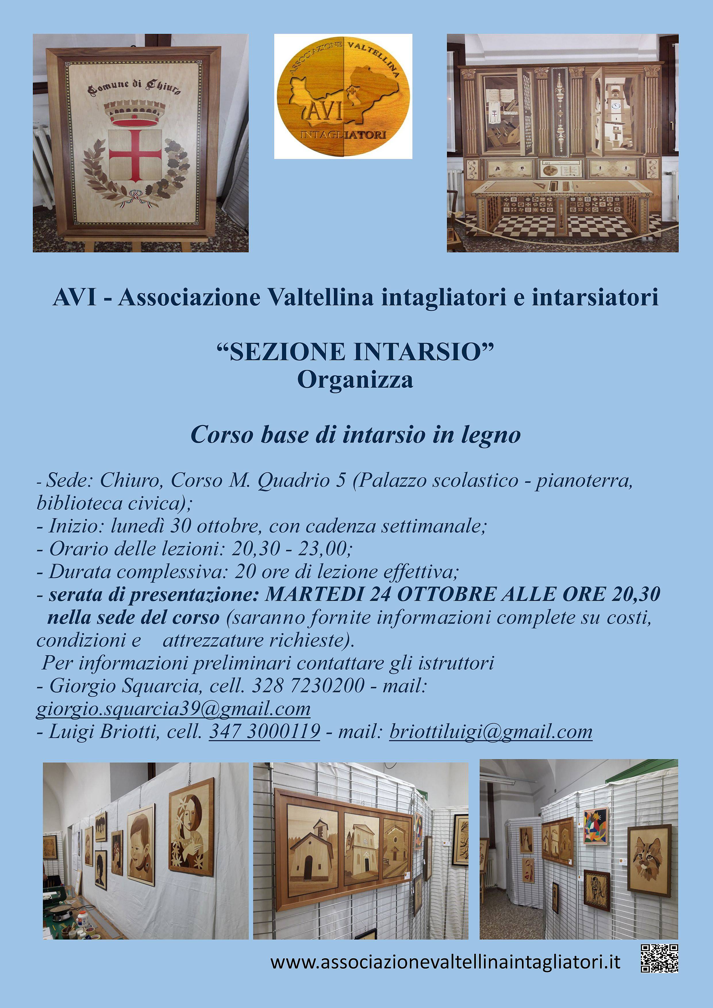 - Corso base di intarsio in legno organizzato da AVI - Associazione Valtellina Intagliatori e intrarsiatori; |