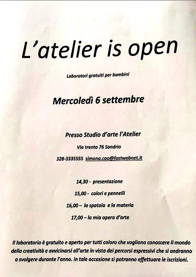 Ricomincia presso l'atelier laboratori gratuiti per bambini Partecipate numerosi |